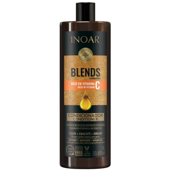 Conditionneur Blends Inoar, un cocktail d’huiles végétales et de vitamine C pour les cheveux normaux à secs.