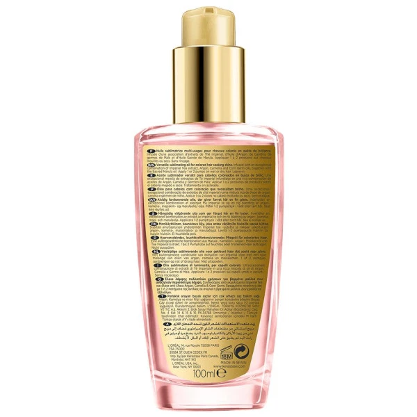 Les huiles qui composent ce soin, s’allient pour former un film protecteur, ces ingrédients d’exception préservent l’éclat de la couleur, ce qui en fait un produit idéal pour les cheveux colorés. Elle est formulée autour de 4 huiles précieuses, auxquelles s’ajoute le thé impérial, cette huile capillaire est idéale en tant que soin de sublimation quotidien.