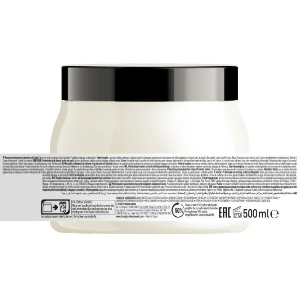 Masque Metal Detox L’Oréal Professionnel, pour nourrir les cheveux en profondeur après un service technique (coloration, décoloration, balayage), les rendant moins poreux et les protégeant ainsi du dépôt de nouvelles particules de métal (telles que le cuivre).