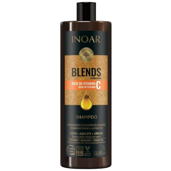 Shampooing Blends Inoar, un cocktail d’huiles végétales et de vitamine C pour les cheveux normaux à secs.