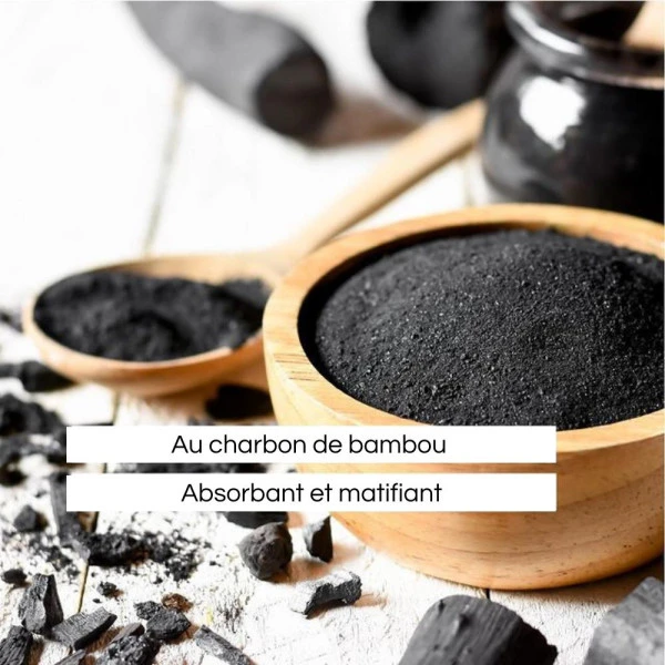- Conçu avec du charbon de bambou pour ses propriétés absorbantes et matifiantes