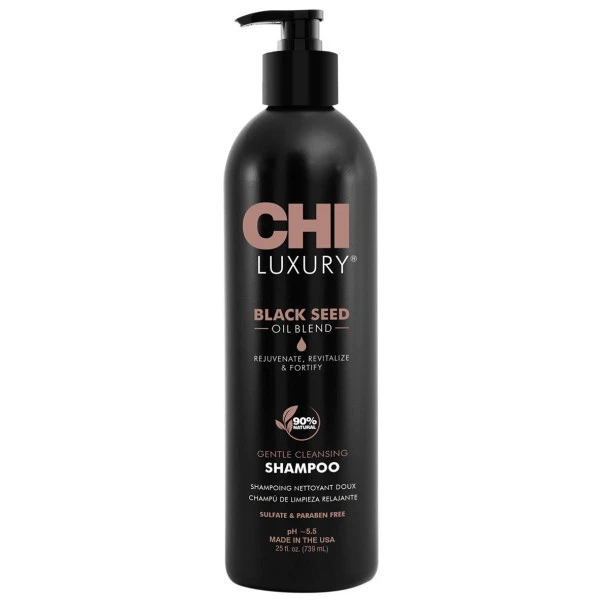 Le shampooing Luxury Black Seed Oil de CHI nettoie dĂ©licatement les cheveux des impuretĂ©s avec une mousse riche et luxueuse formulĂ©e avec de l’huile de graines noires. Cette huile exotique, formulĂ©e Ă 90% d’ingrĂ©dients naturels, aide Ă revitaliser les cheveux pour des mèches de cheveux plus denses et plus Ă©paisses, favorisant le volume et le corps. La chevelure est fortifiĂ©e avec une brillance et un Ă©clat incroyable.