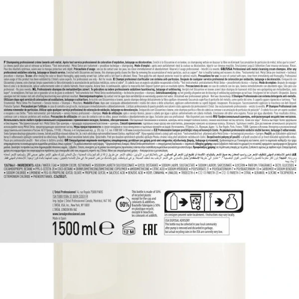Shampooing Metal Detox L’Oréal Professionnel, la crème lavante anti-métal et autres pollutions, pour détoxifier le cheveu après un service technique (coloration, décoloration, balayage).