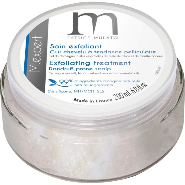 Soin exfoliant M.expert Patrice Mulato, pour assainir le cuir chevelu. C’est une alliance d’actifs naturels précieux pour un cuir chevelu sains, apaisé et oxygéné. Formulé à 99% d’ingrédients d’origine naturelle.